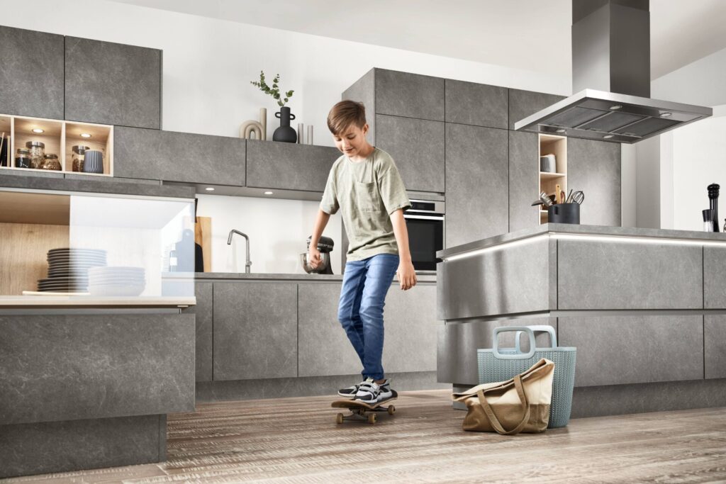Geradlinige Designküchen sehen im Katalog großartig aus – doch wer Kinder hat, weiß: Hochglanzfronten und empfindliche Marmorplatten sind keine Freunde von Kakao-Fingern und schnellen Bewegungen. Familienküchen müssen robust sein. Hier darf gelebt werden, auch mal mit einem kleckernden Joghurtbecher.